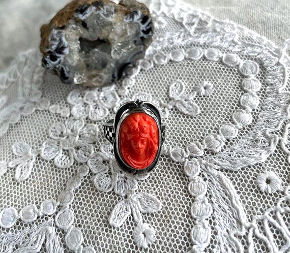 1930s Art Deco Uncas Sterling Silver Agate Cabochon Statement Ring