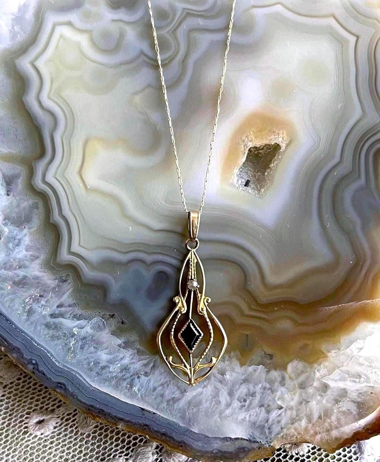 Featuring a beautiful antique 1910s Edwardian Era dainty 10k yellow gold filigree pendant necklace adorned with a beautiful faceted bezel set sapphire gemstone, accented with luminous genuine seed pearls. Necklace is in excellent antique condition with a functional stamped C spring clasp, minimal wear with all components intact and accounted for. Necklace measures approximately 18 inches around with a 1.25 inch pendant drop at 1.17 grams respectively, hallmarked 10k on the bezel, tested as 9k. An excellent investment, beautifully designed and handcrafted over a hundred years ago.