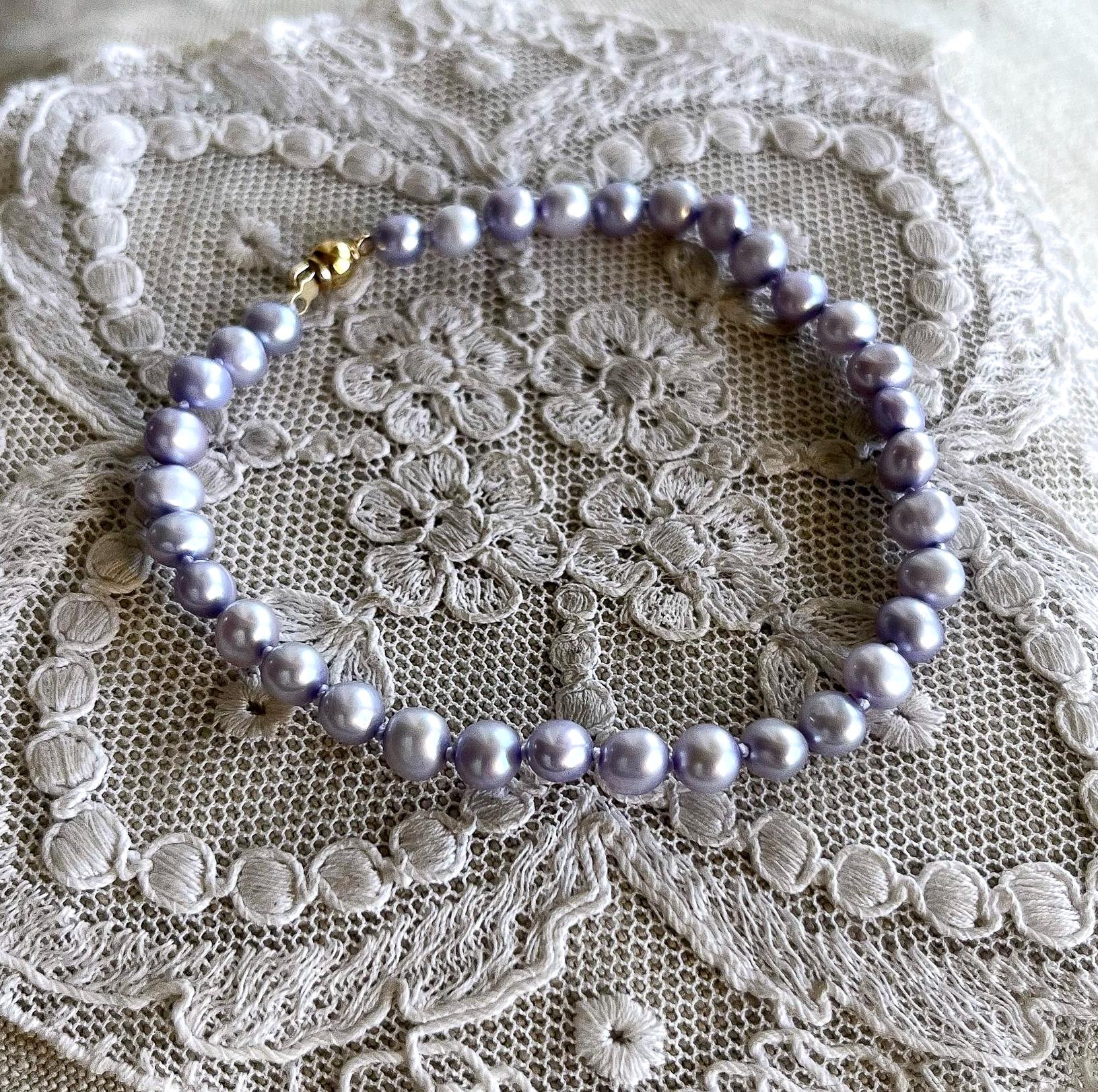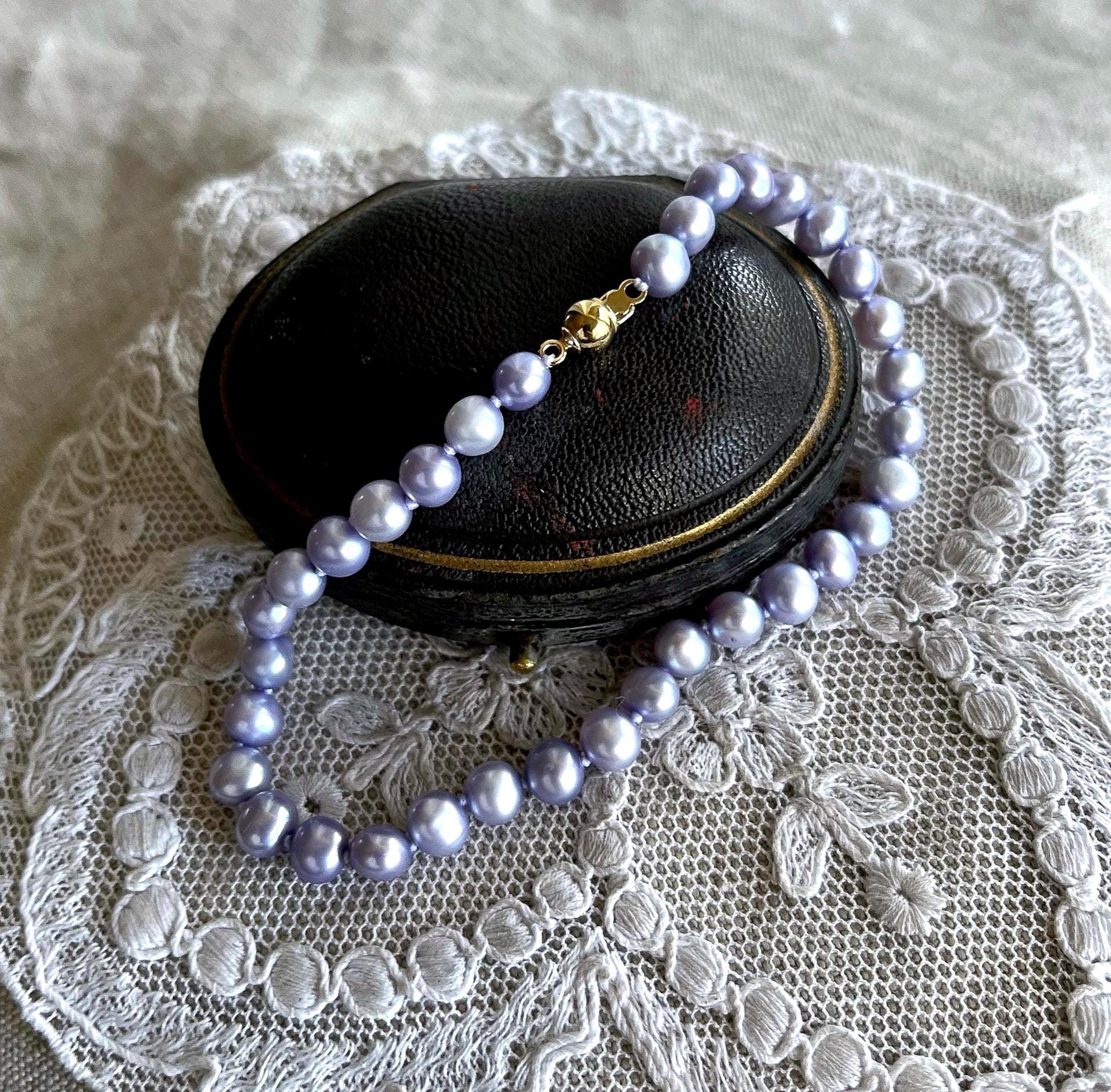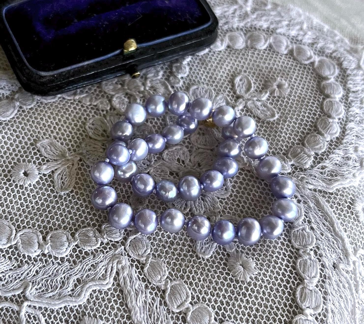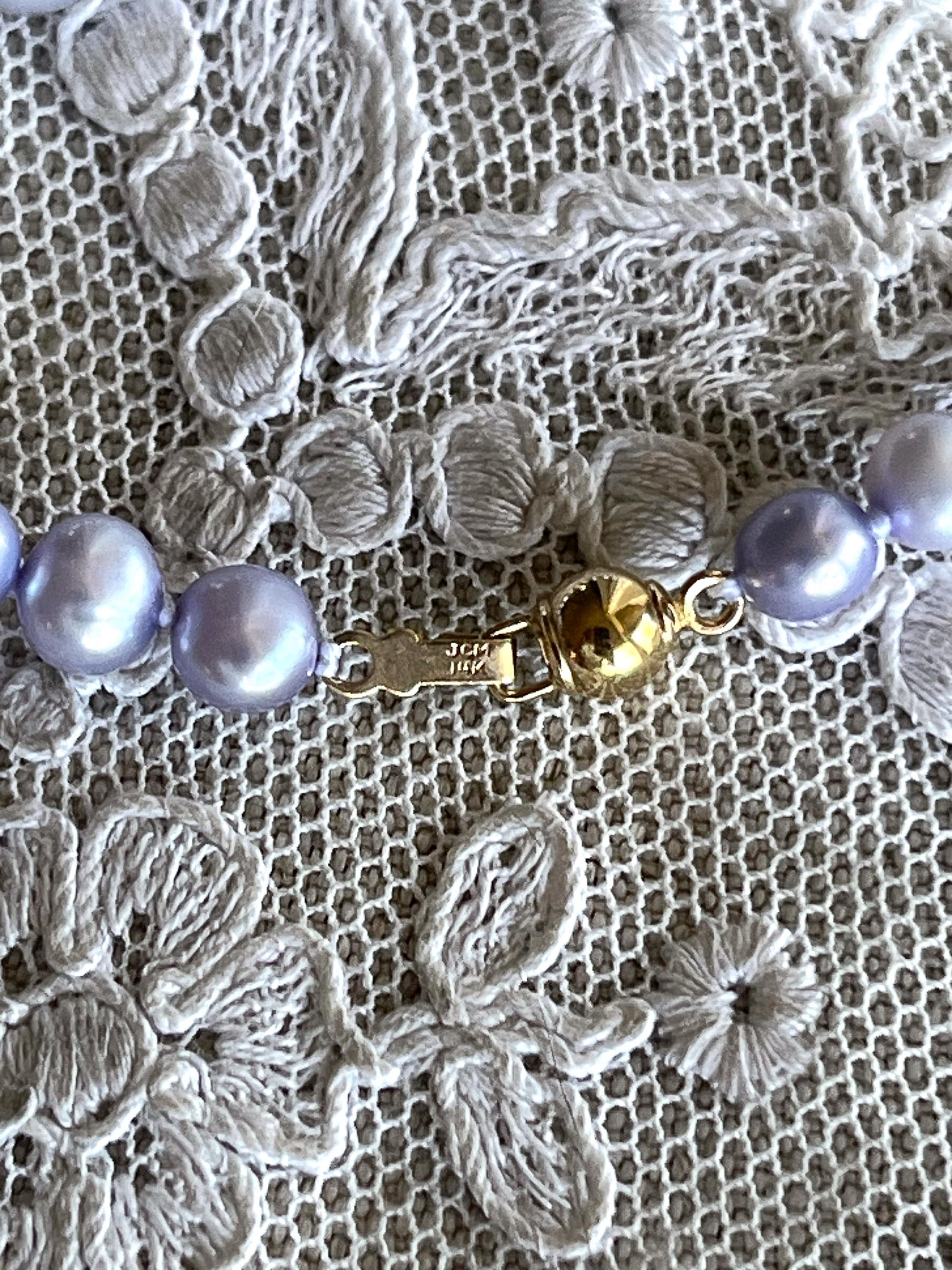 Featuring a retired Jacmel Mauritius luminous genuine Lavender Pearl hand knotted bracelet adorned with a solid 14k gold clasp. Bracelet is in beautiful condition with a functional clasp, virtually no wear with all components intact, hallmarked on clasp. Timeless Haute Couture, this elegant piece measures approximately 7.5 inches around at 7.50 grams respectively, collectible and wearable!