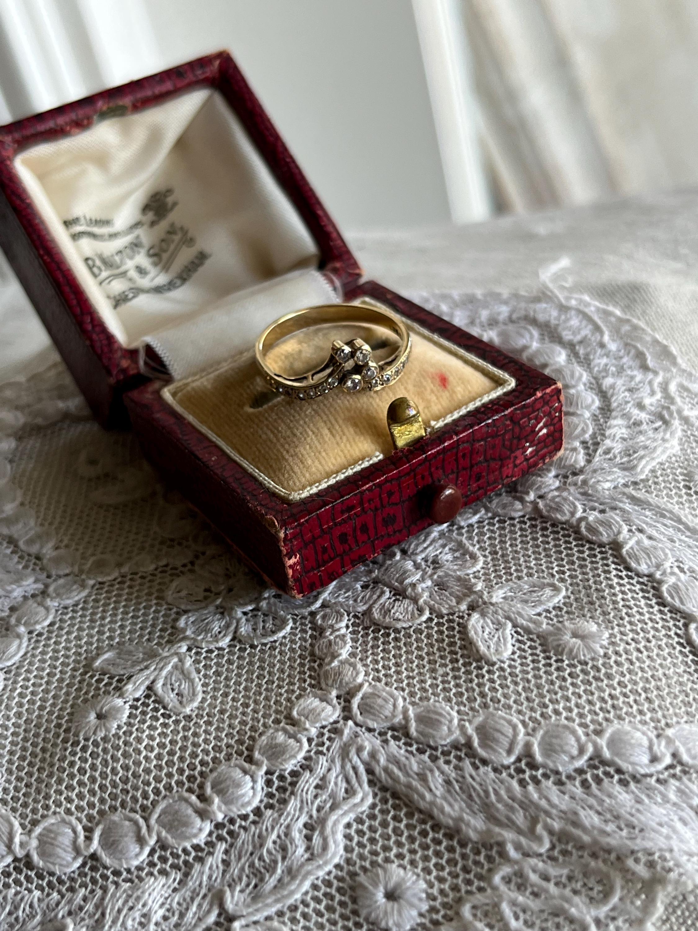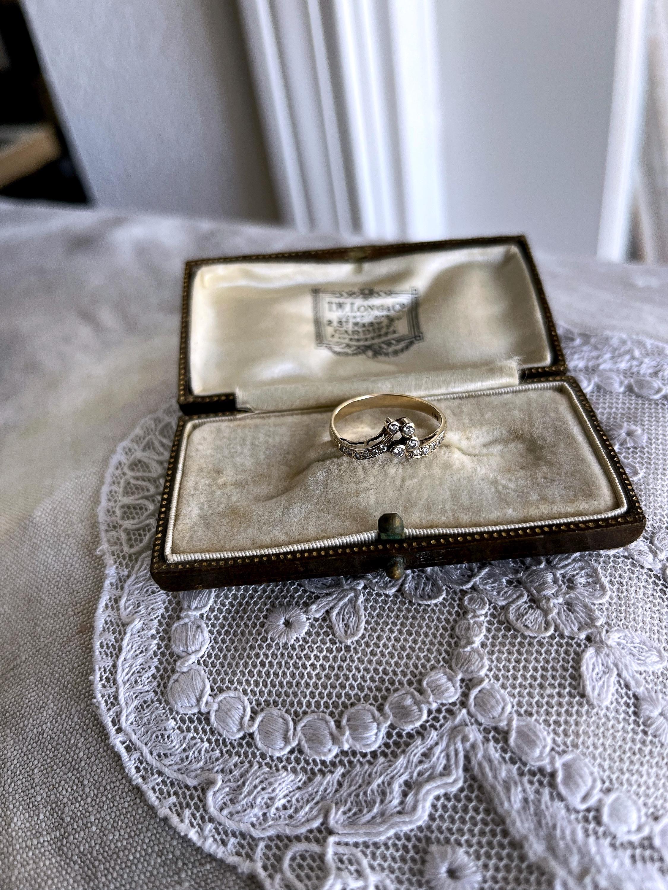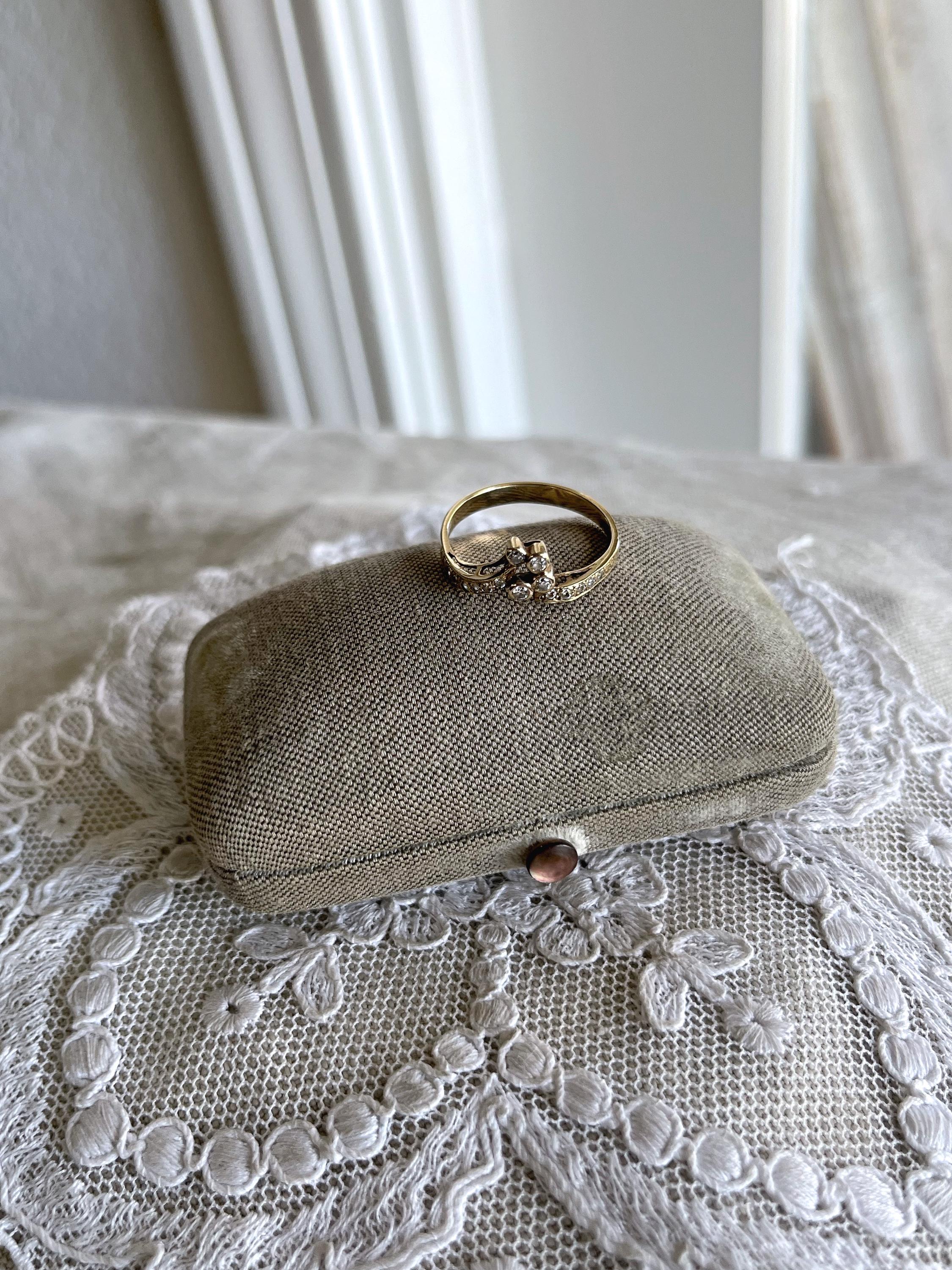 Featuring a brilliant vintage solid 10K Rose gold cocktail ring adorned with dazzling genuine faceted White Topaz gemstones in. Ring is in excellent condition with minimal wear, with all stones intact and accounted for . Ring is approximately size 8 with stones measuring at 2. grams respectively and is stamped GSK 10K on the inside of band. Love how Topaz sparkles, it’s a beautiful piece!