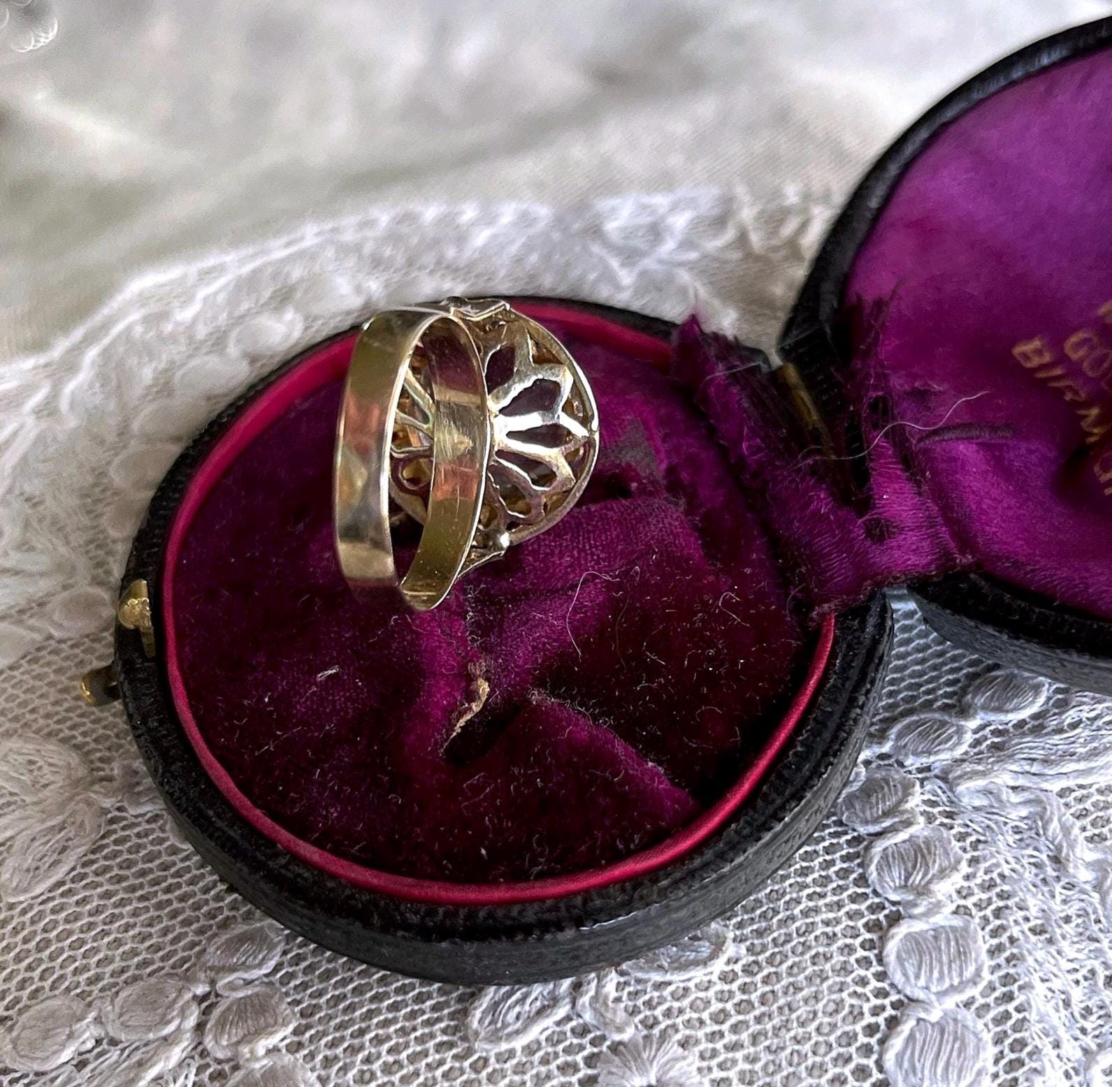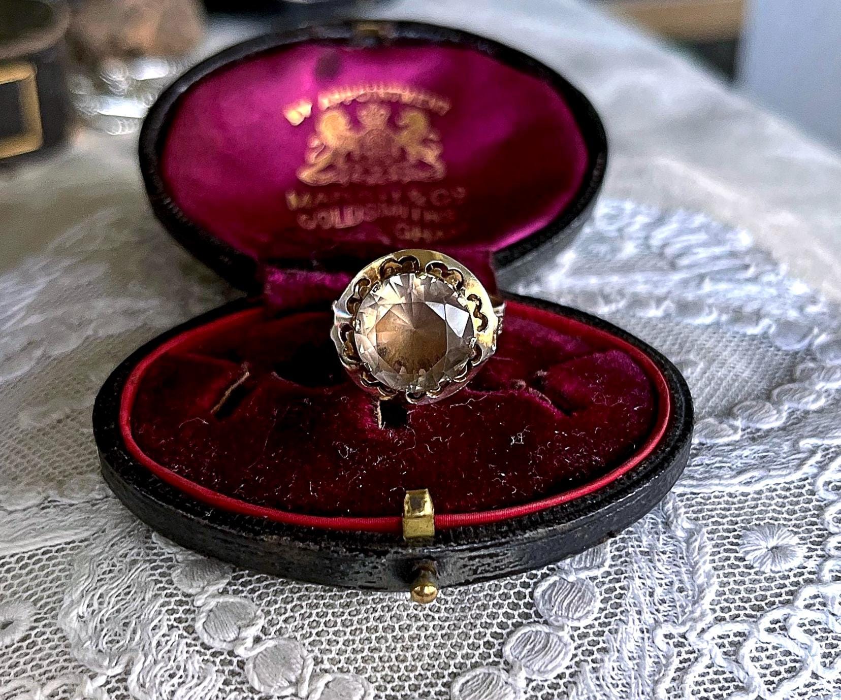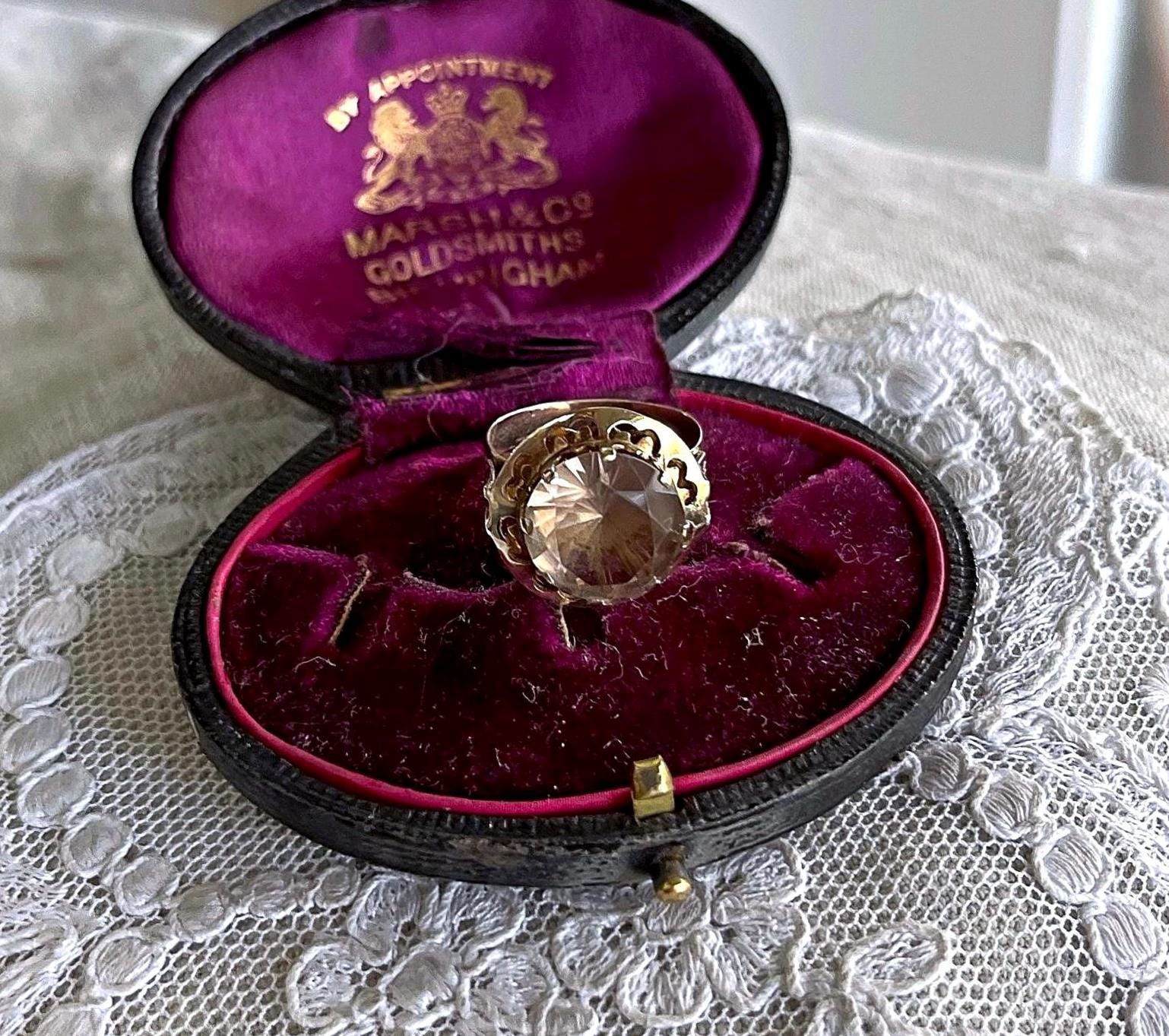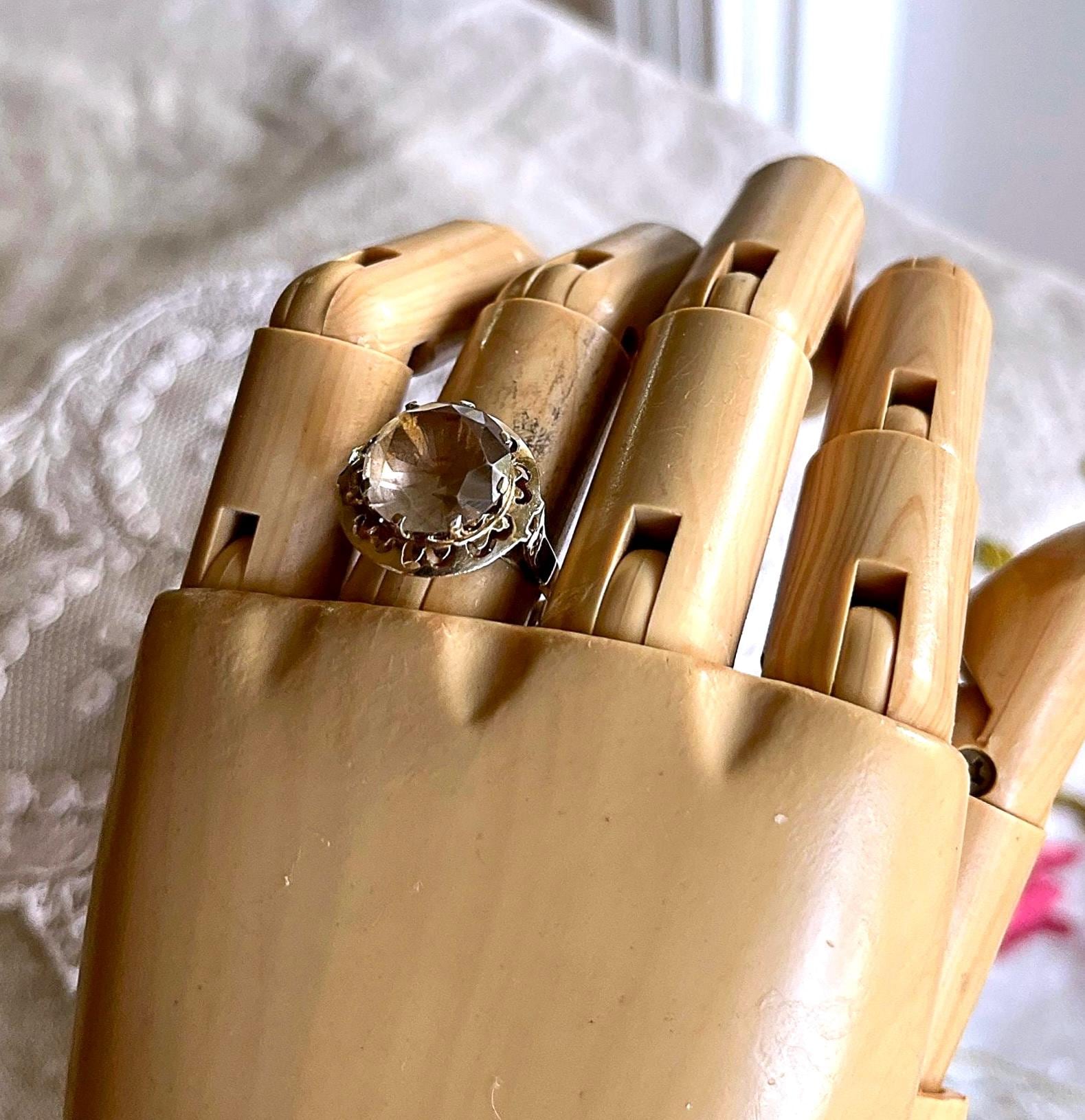 Featuring a magnificent vintage size 7 solid 10k yellow gold decorative Art Deco design statement ring adorned with a 12mm by 8mm genuine prong set faceted Rock Quartz Crystal gemstone. This beautiful unique statement piece is in excellent vintage condition with minimal wear, stamped 10k on the inside of band with all components intact. Ring is approximately size 7 at 3.6 grams respectively. So beautiful and so hard to let go, sparkles like crazy and sits beautifully on the hand!