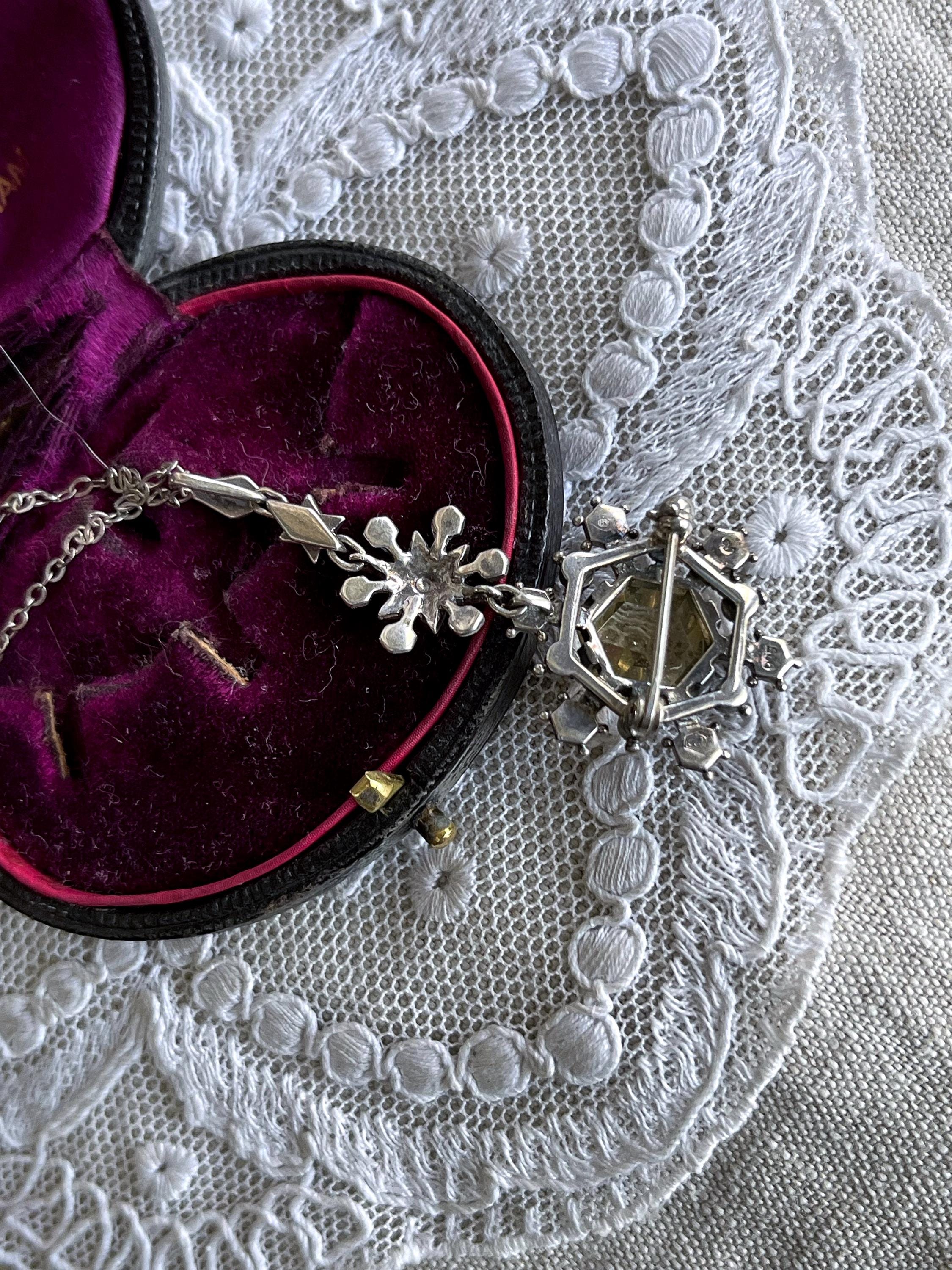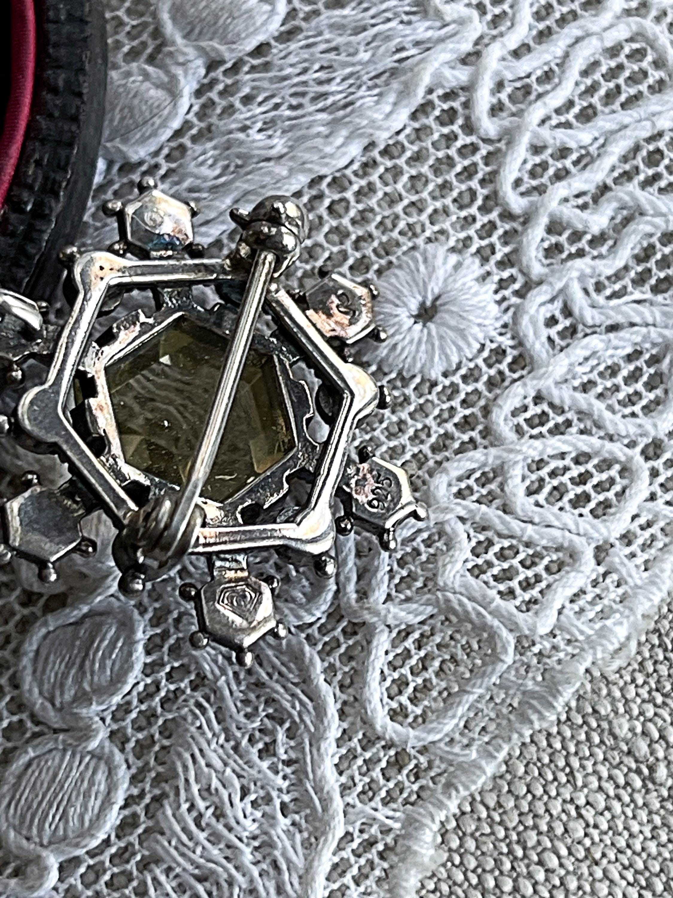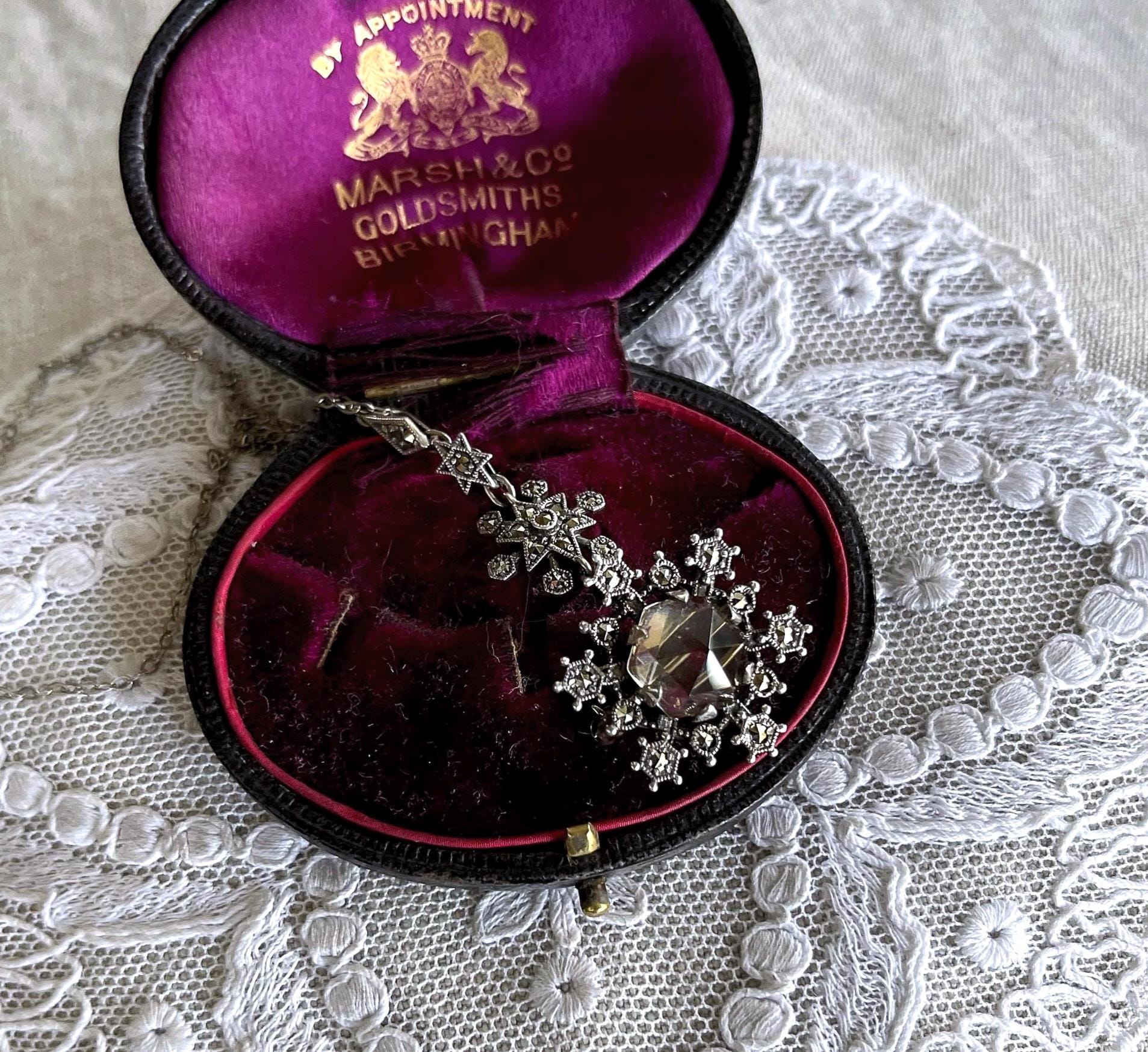 Featuring a beautiful ornate vintage Edwardian revival sterling silver dazzling Brooch pendant necklace adorned with luminous genuine Citrine gemstone accented with sparkling Marcasite crystals set in an amazing ornate setting. Necklace measures approximately 18 inches around with pendant measuring 2.2 inches at 5.92 grams respectively. In excellent vintage condition with a functional clasp on brooch and chain, a nice patina with all stones intact and accounted for. Beautifully designed, collectible and always appreciating! Wear as an amazing necklace or as a majestic brooch, ready to pass on for generations.