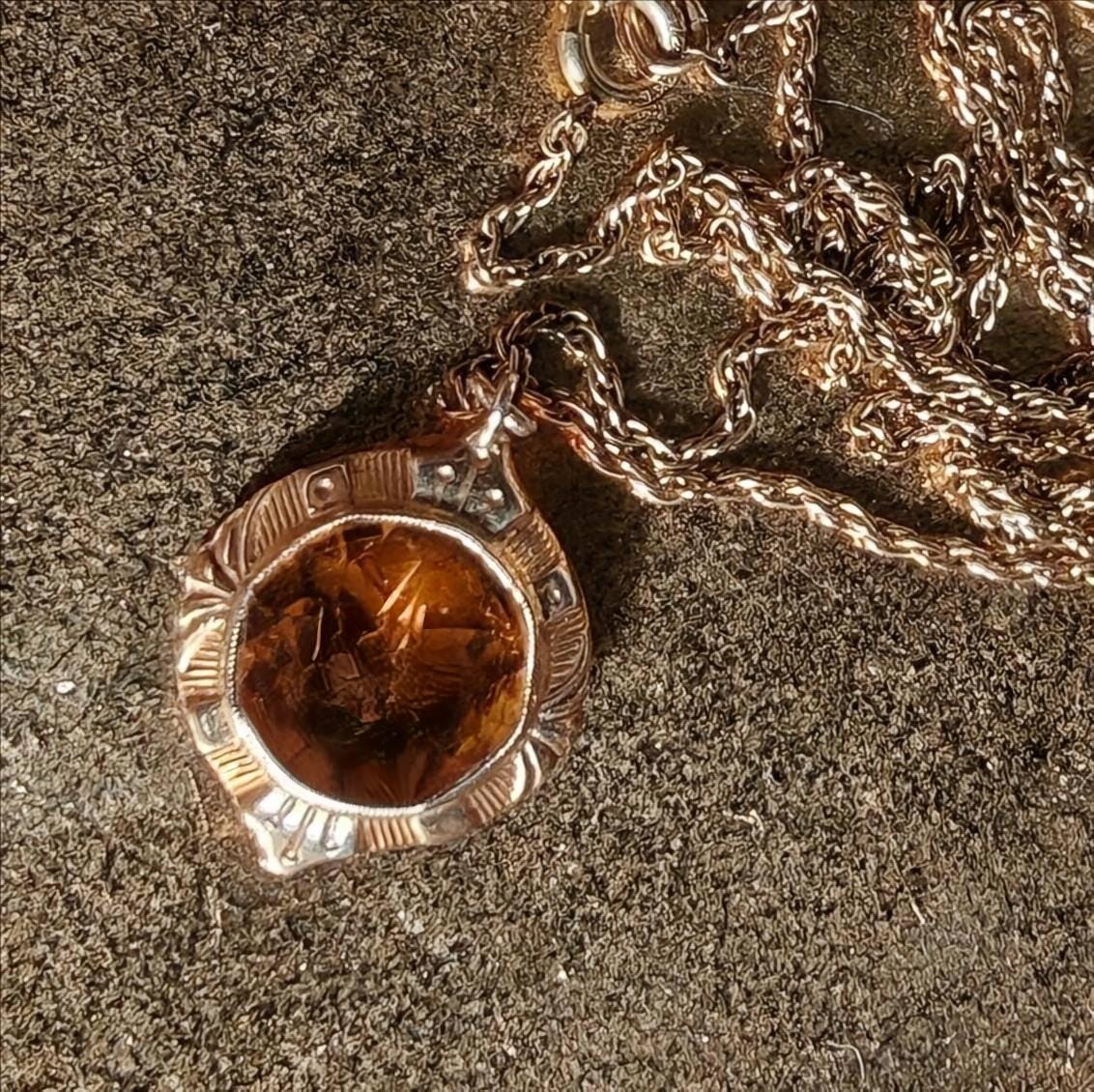 Featuring a fine delicate 10k yellow gold delicate pendant necklace adorned with a brilliant faceted genuine yellow topaz gemstone set in a 10k gold closed back setting. Necklace is in excellent antique condition hallmarked 10k pendant with a 10k gold filled chain, a functional thumbless clasp ,normal wear with all components intact and accounted for. Measuring approximately 18 inches around with a .75 inch pendant drop at 3.96 grams respectively. Beautifully designed and handcrafted over 100 years ago, ready to wear!