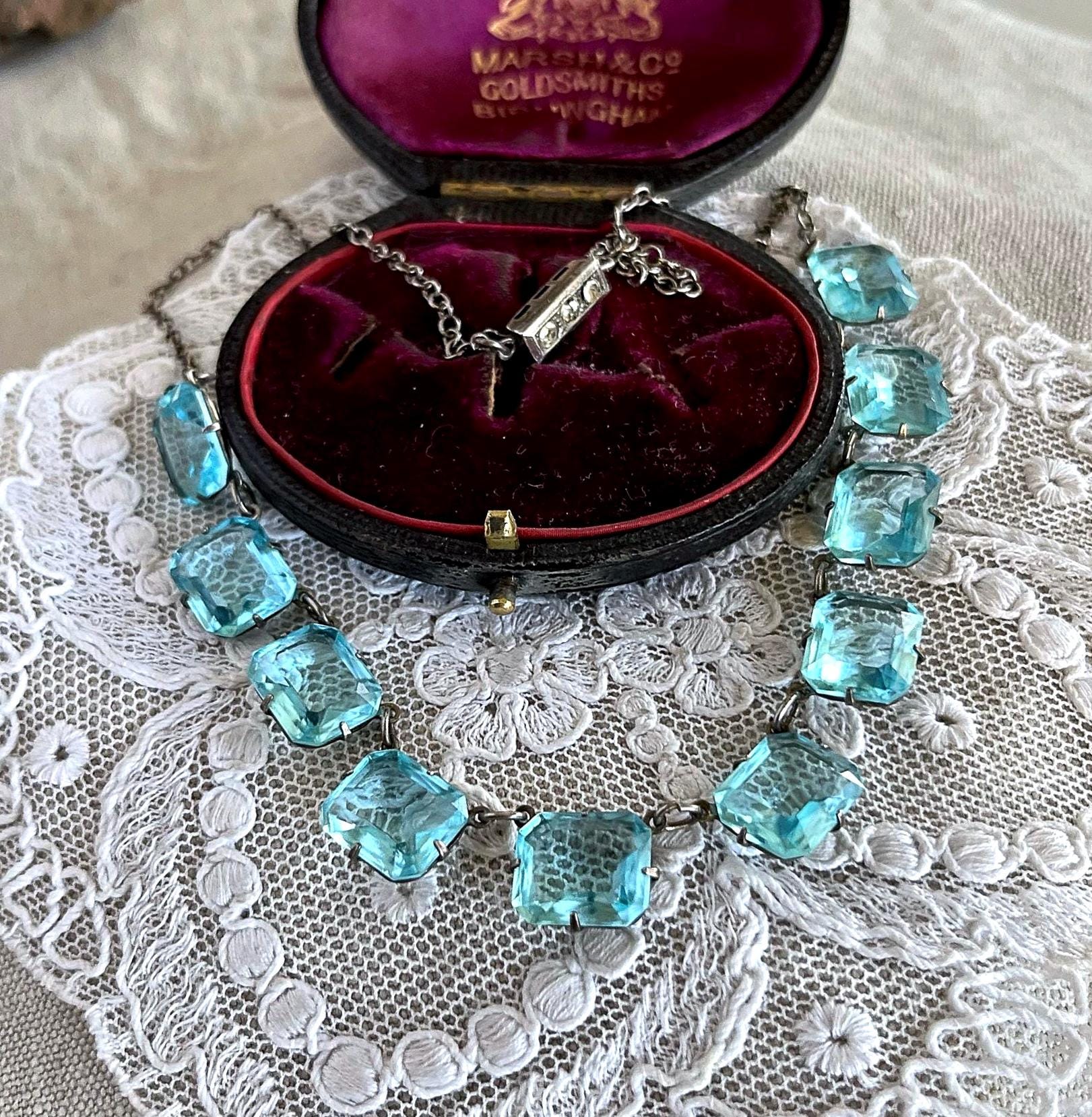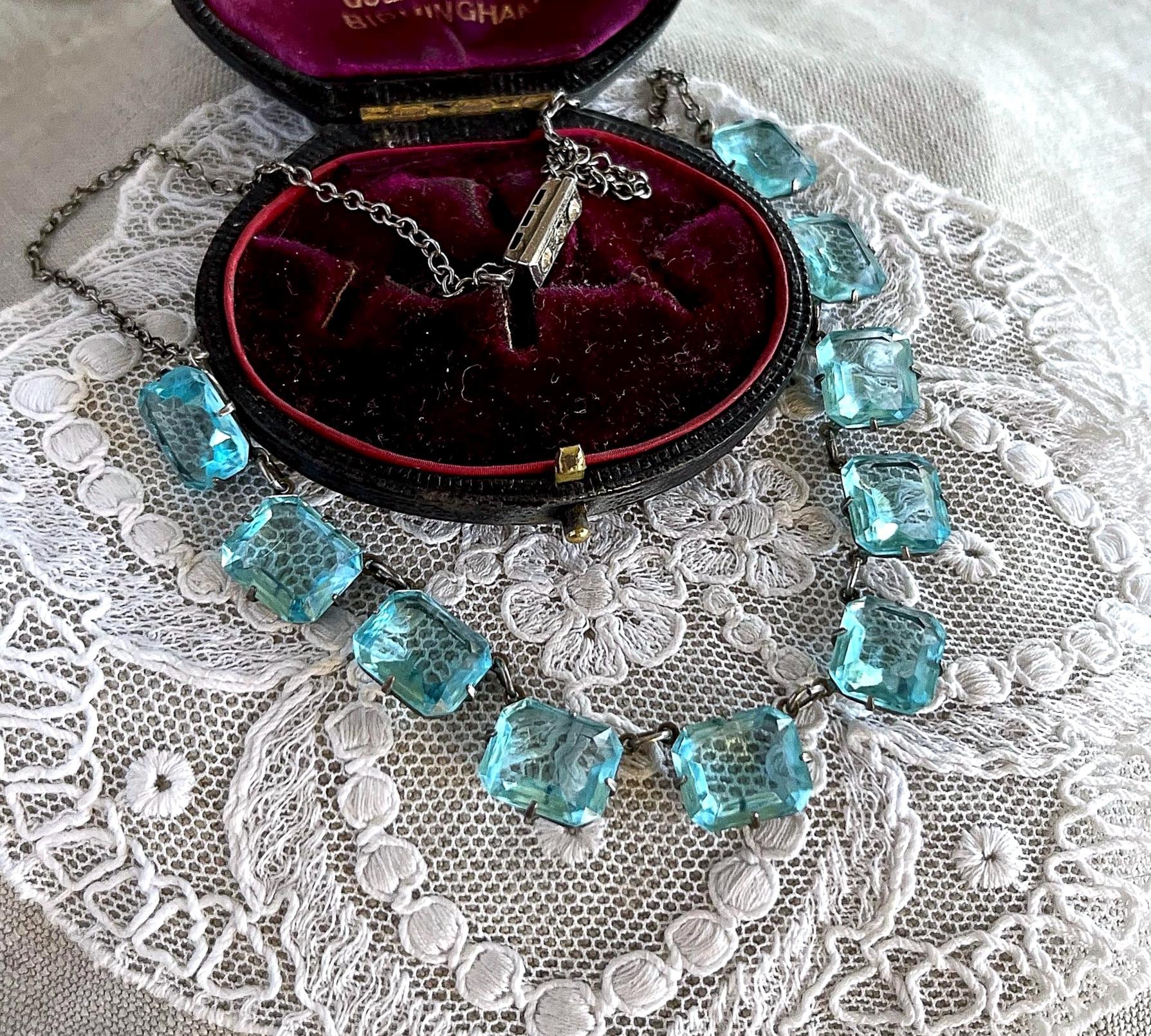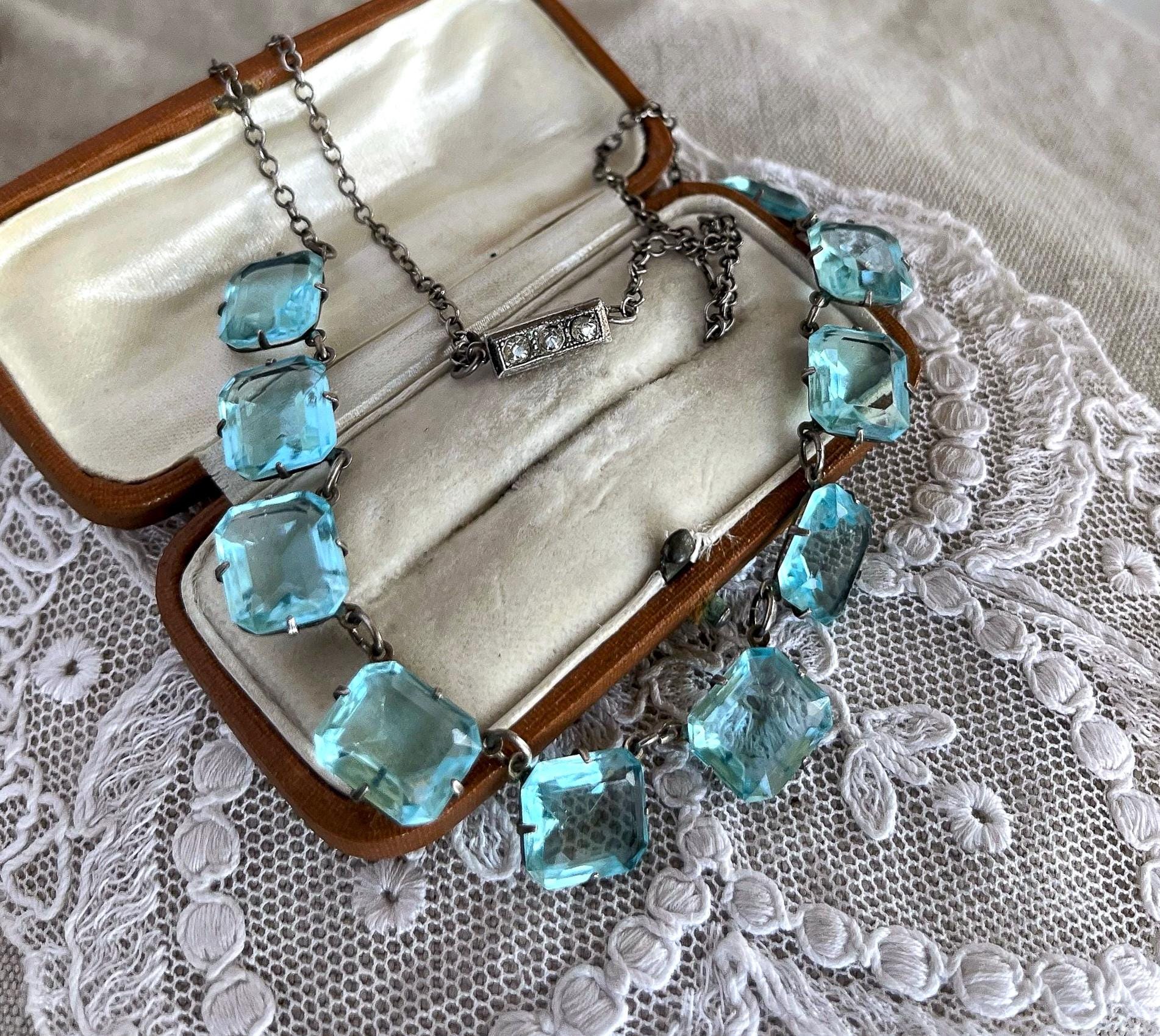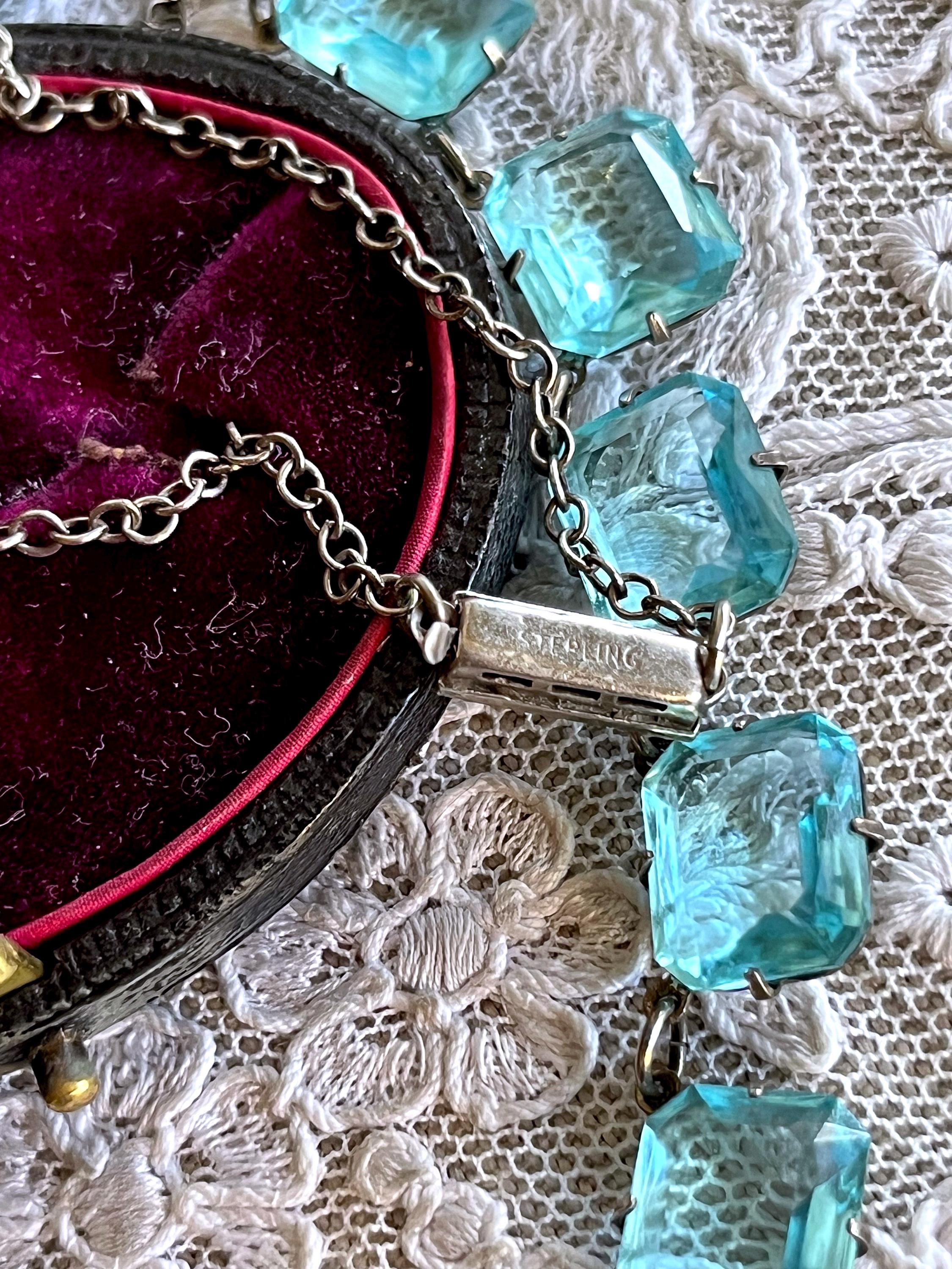 Antique Art Deco Sterling Silver Blue Paste Bib Necklace – 1920s Hallmarked Clasp