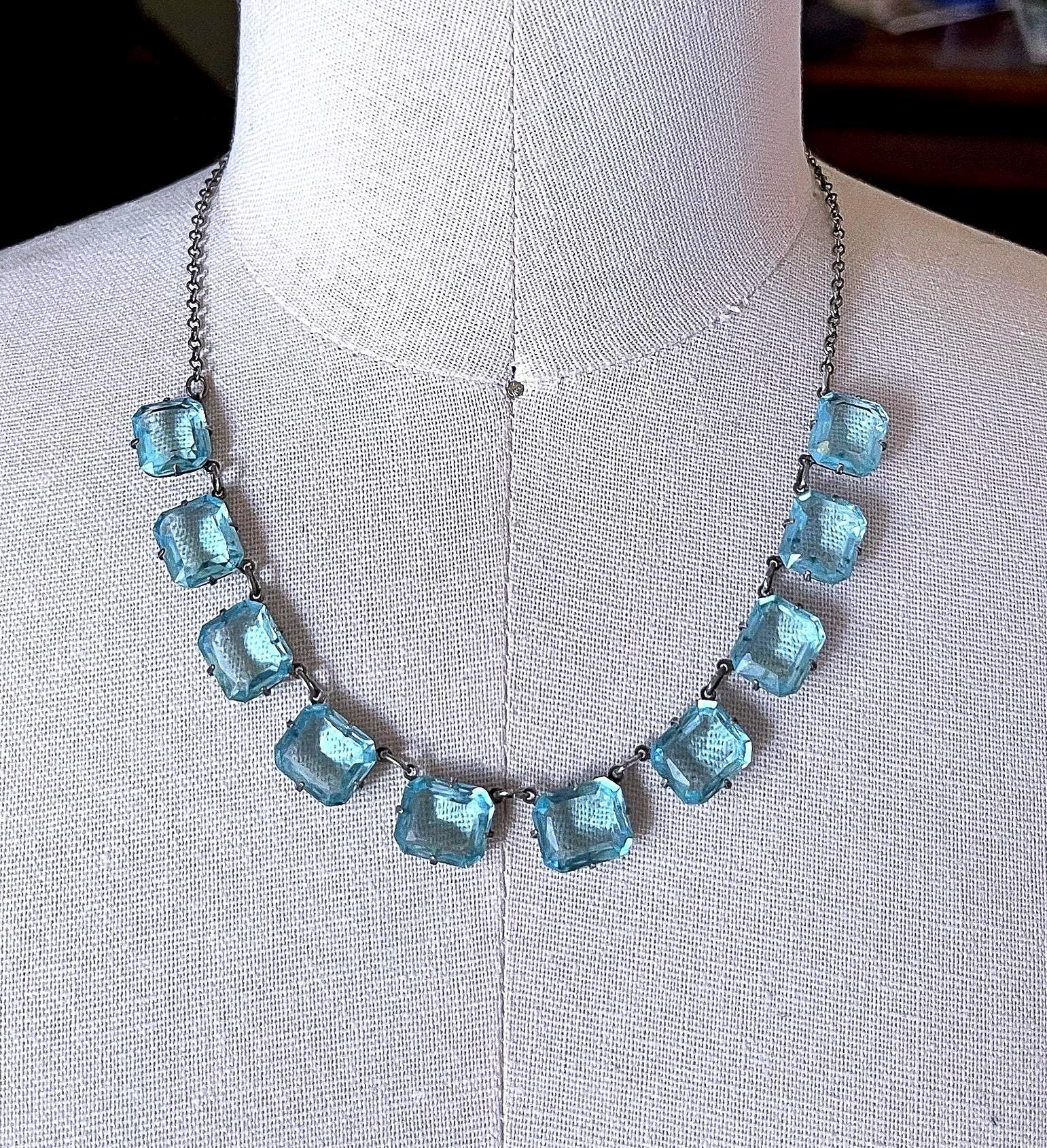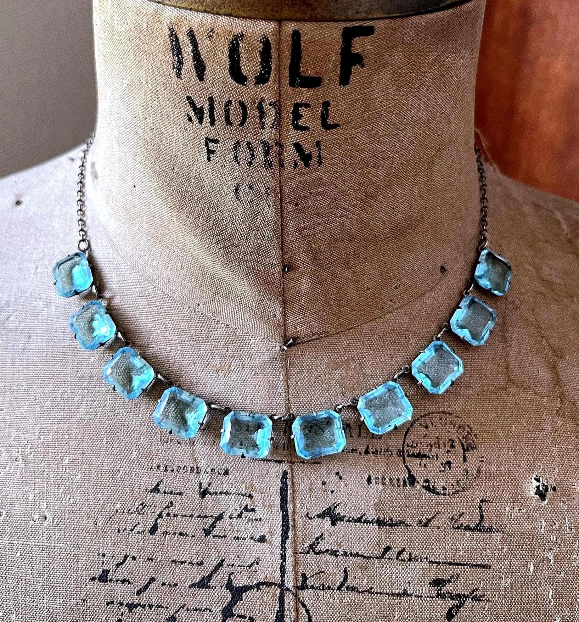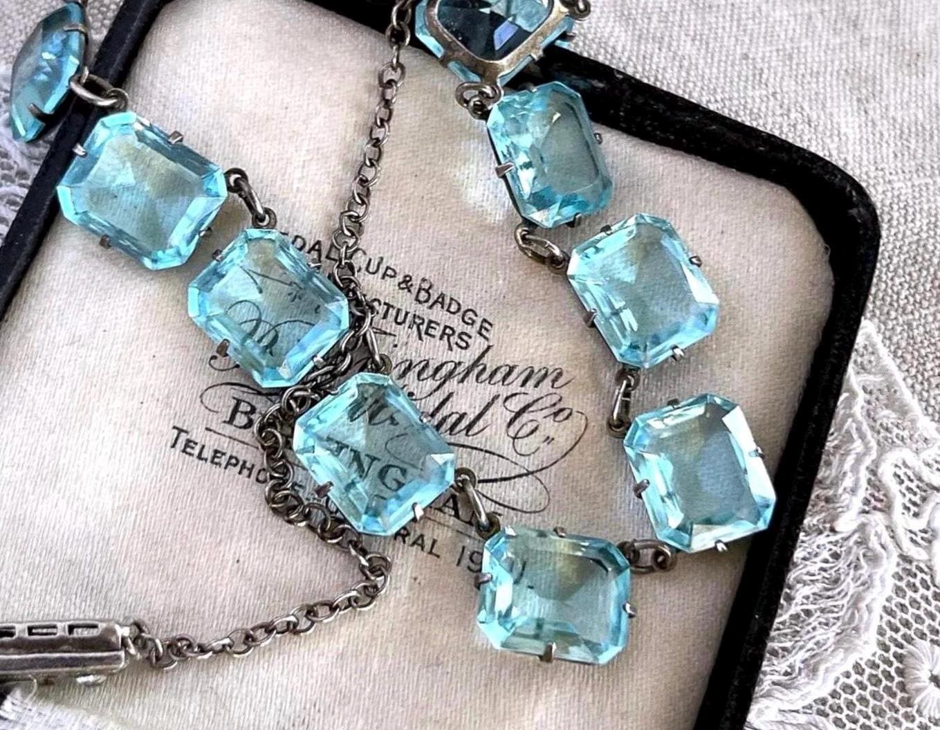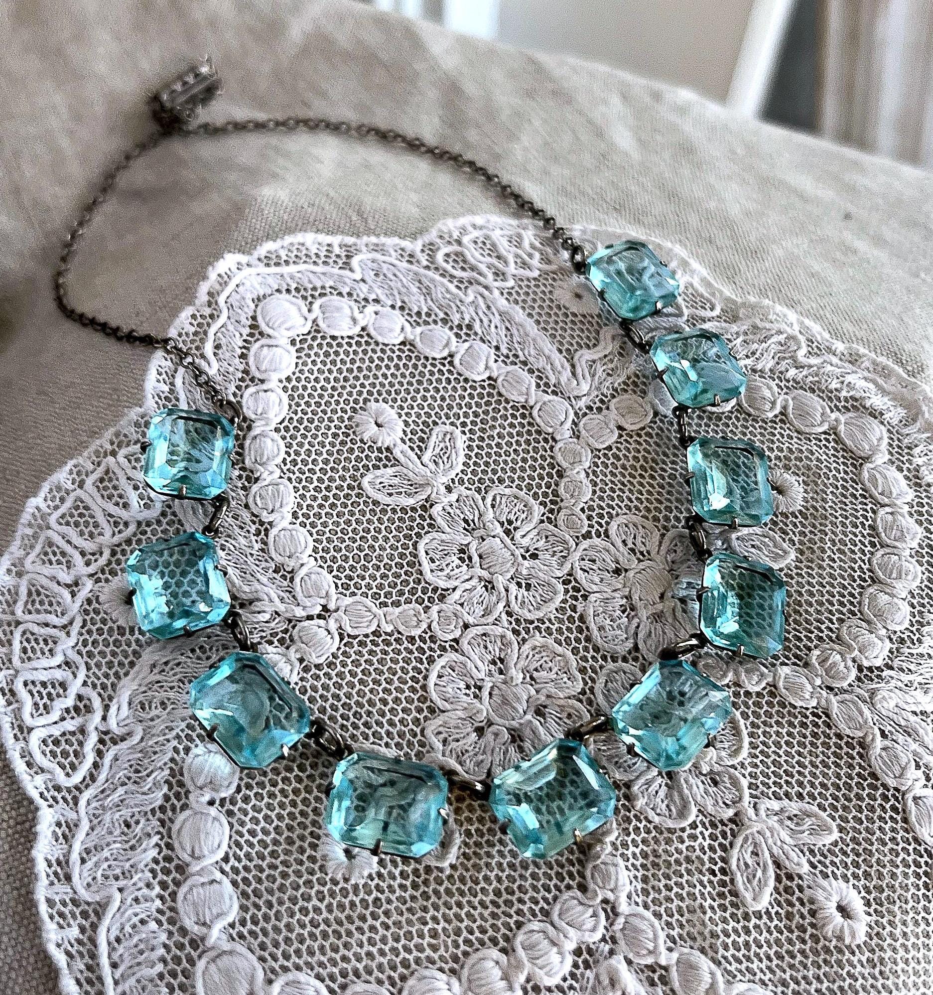 Antique Art Deco Sterling Silver Blue Paste Bib Necklace – 1920s Hallmarked Clasp
